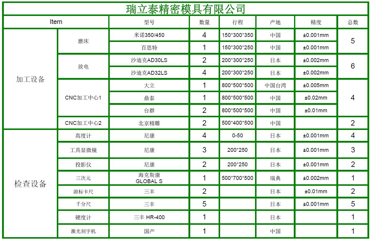 瑞立泰公司以准时交货、有效的成本控制、良好的品质 以及提供可行的解决方案,充分保护客户的机密的方式 满足客户要求。 期待您的关注和支持! 瑞立泰国际有限公司 东莞市瑞立泰精密模具有限公司 地址:广东省东莞市长安镇沙头塘南街3号 电话:86-0769-81802892 手机:13412395904 邮箱:skill_rhymetech@163.com